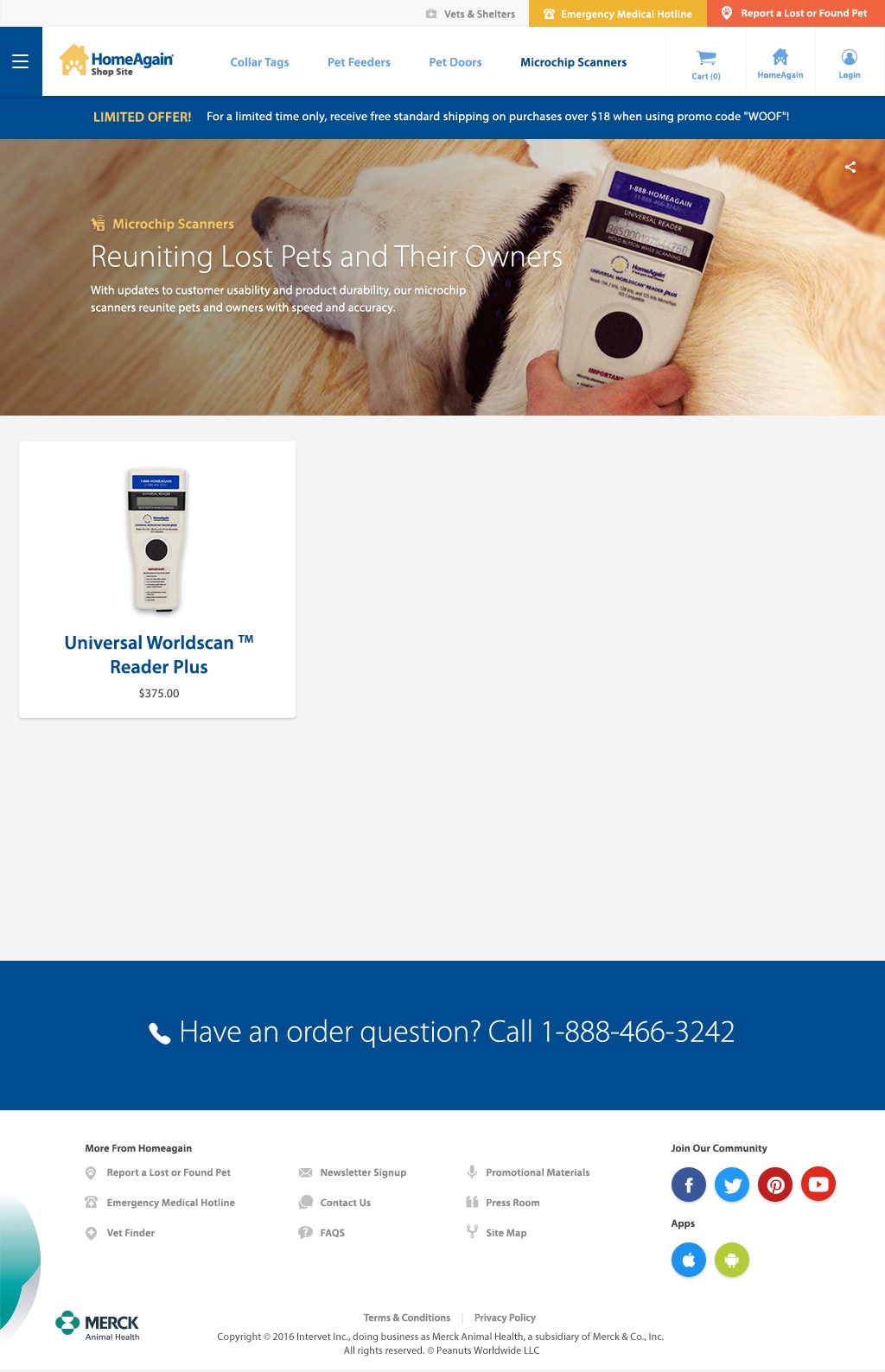 HomeAgain is a pet microchipping service offering primarily pet management and recovery features to its users. The shop site is one of 2 primary ways users can purchase collar tags for their pets.