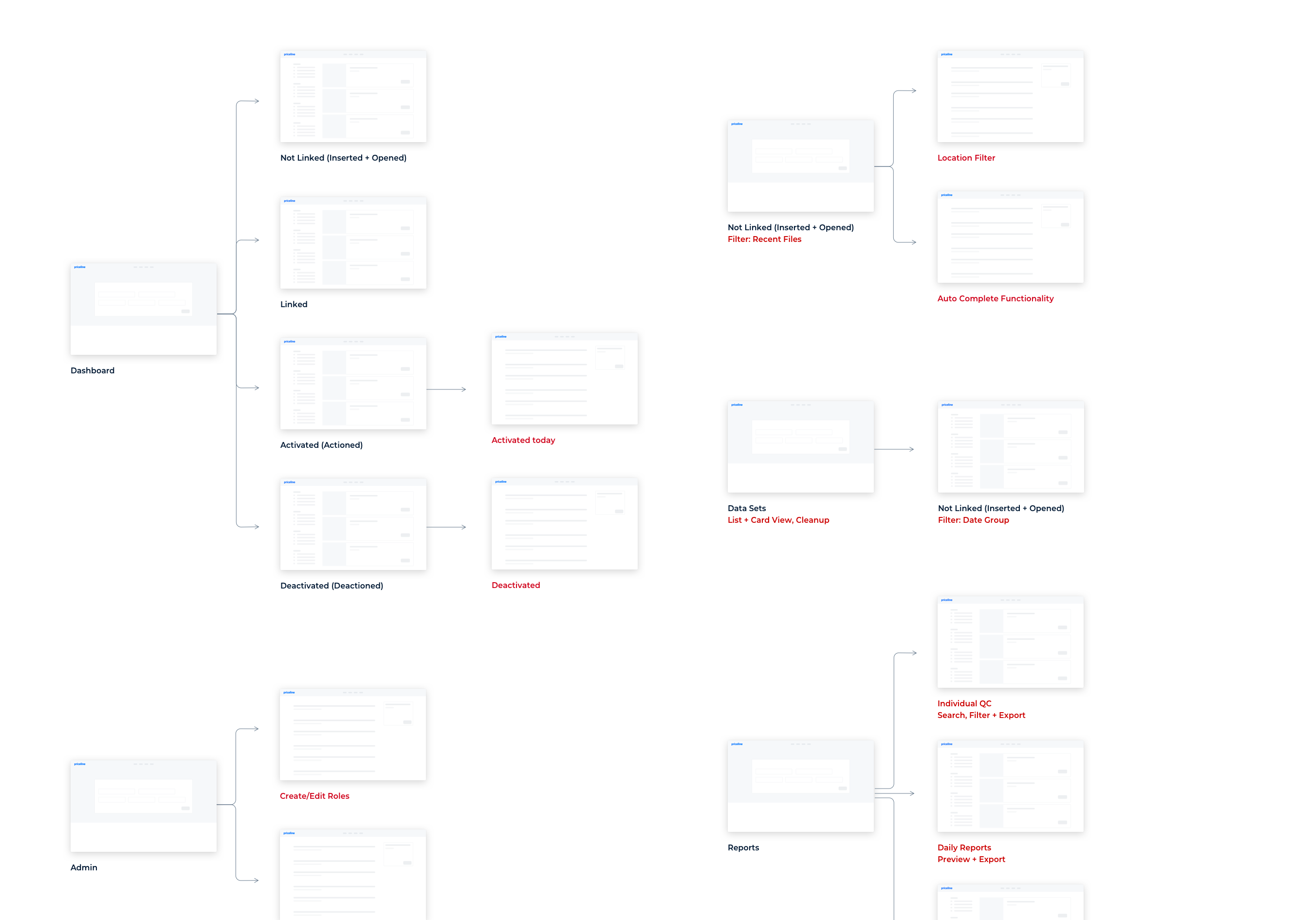 User interviews uncovered a need for us to re-think user flows for specific tasks within some of the applications. We needed to ensure our internal users were still able to access the functionality they needed to be able to continue accomplishing their usual tasks as well as begin to solve the current workflow issues they were experiencing.